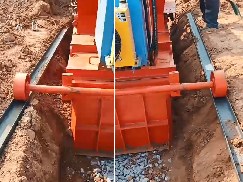 水渠機放入溝模內,槽鋼輥道已經(jīng)沒有作用了,槽鋼輥道是輔助機器行走直線的。但是這么惡劣的現(xiàn)場,已經(jīng)用不上槽鋼輥道了。在作業(yè)過程中要把槽鋼輥道撤掉。